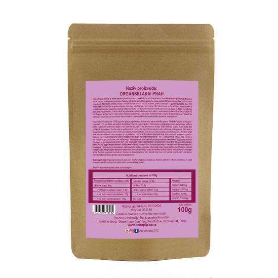 Naš organski akai prah sušen je zamrzavanjem (freeze-dried), kako bi se sačuvale prirodne karakteristike voća — ukus, boja i kvalitet.