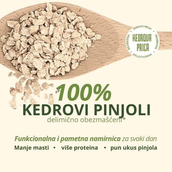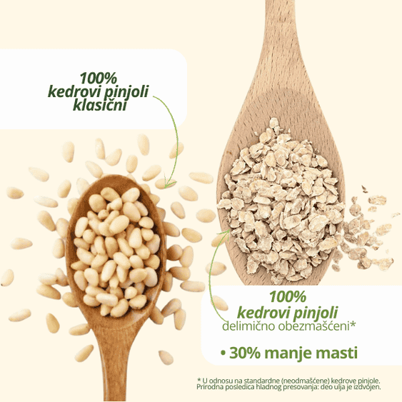 30% manje masti u odnosu na standardne (neodmašćene) kedrove pinjole*