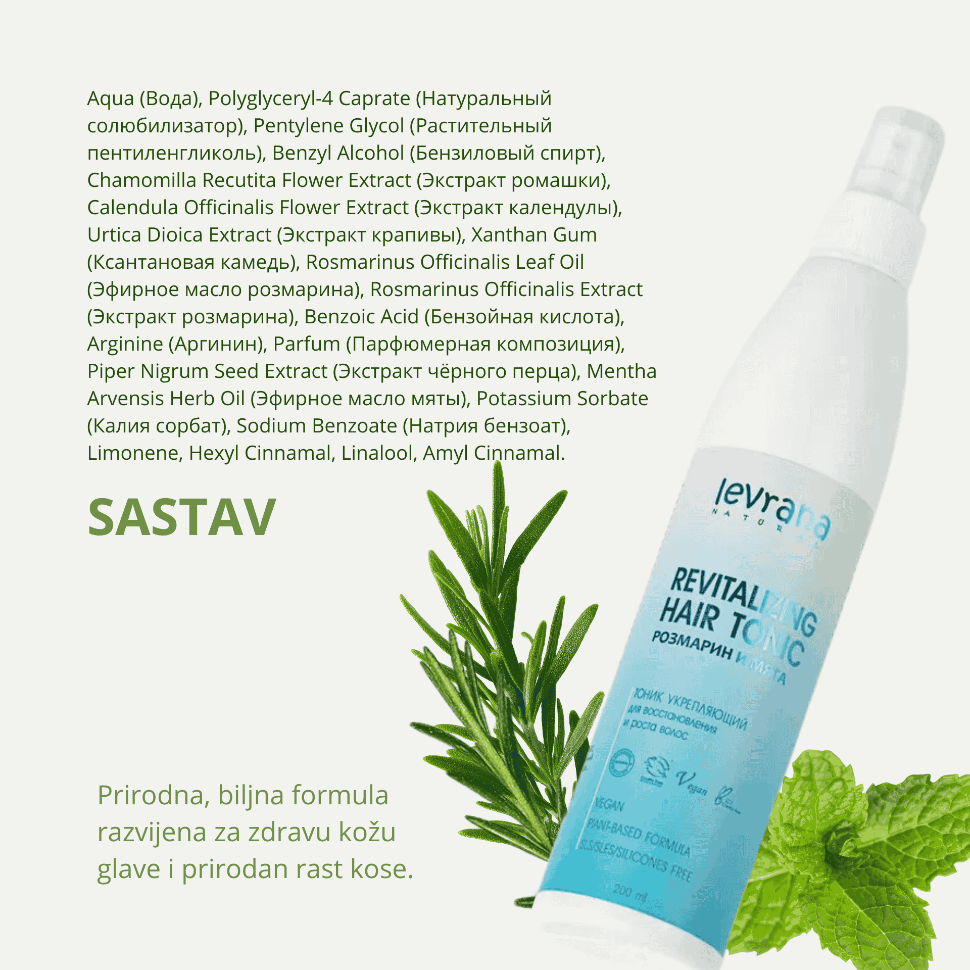 Ovaj prirodni tonik-serum za kožu glave razvijen je kao aktivna podrška rastu kose. Njegova lagana, biljna formula stimuliše mikrocirkulaciju, hrani folikule i jača kosu u svim fazama rasta — od korena do vrhova.
