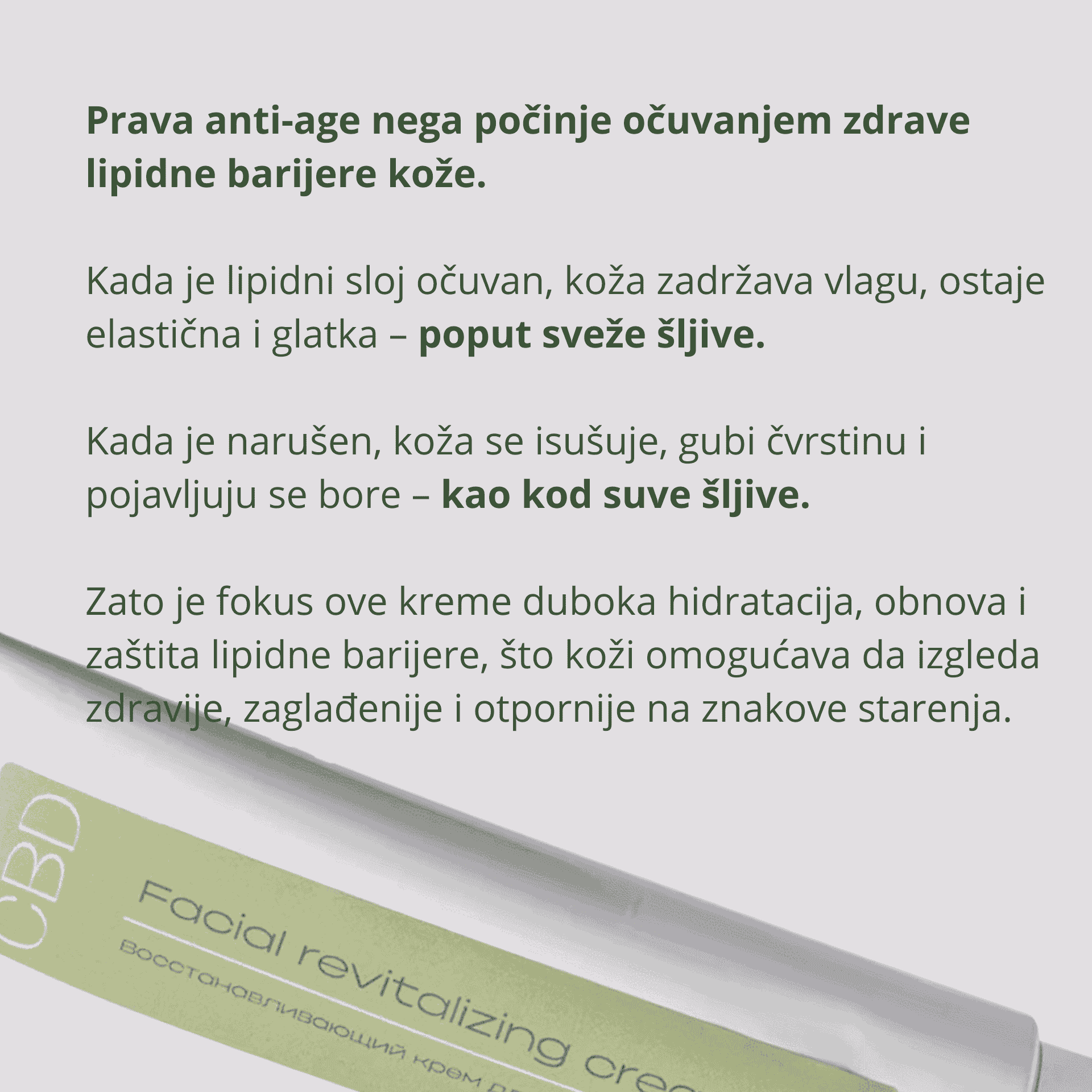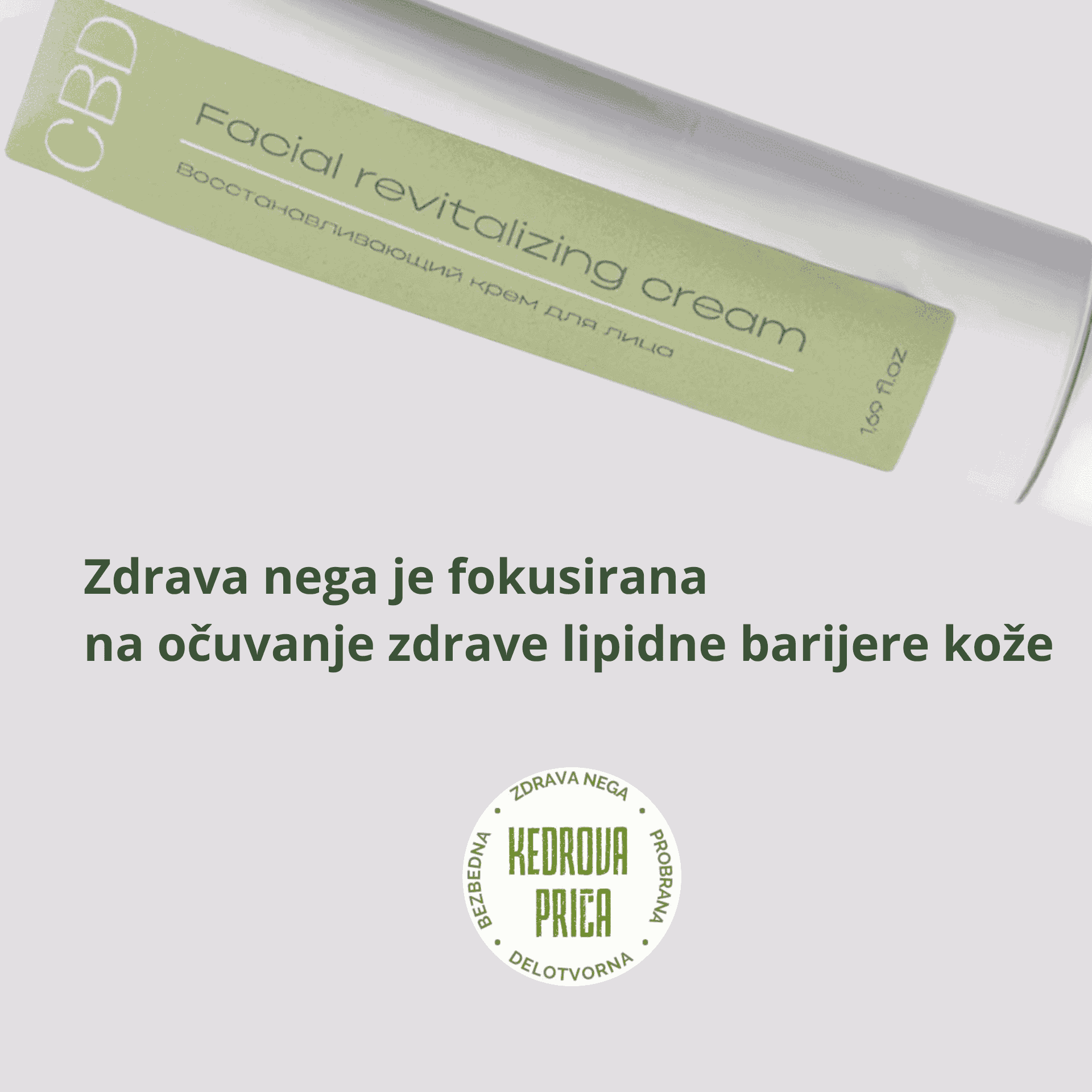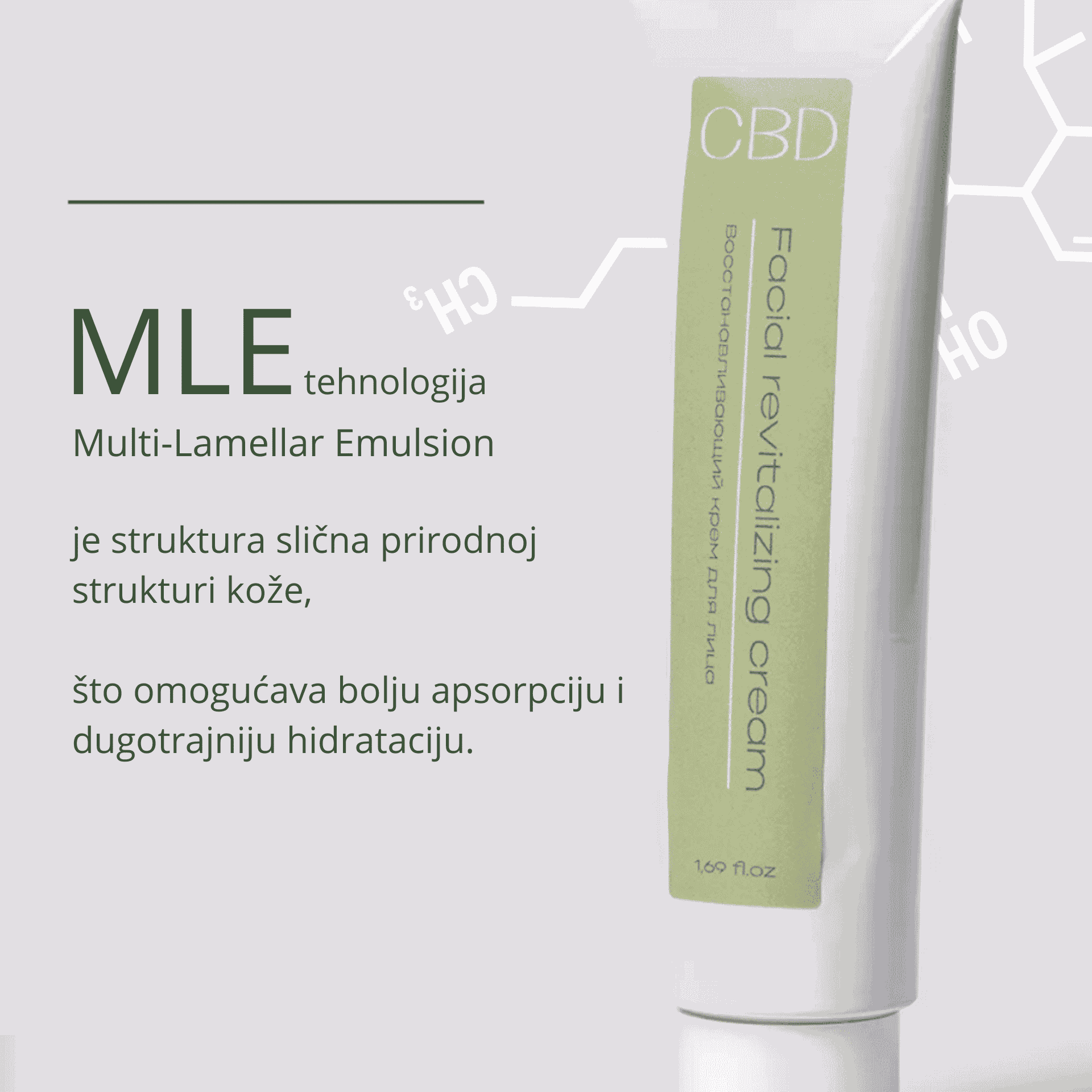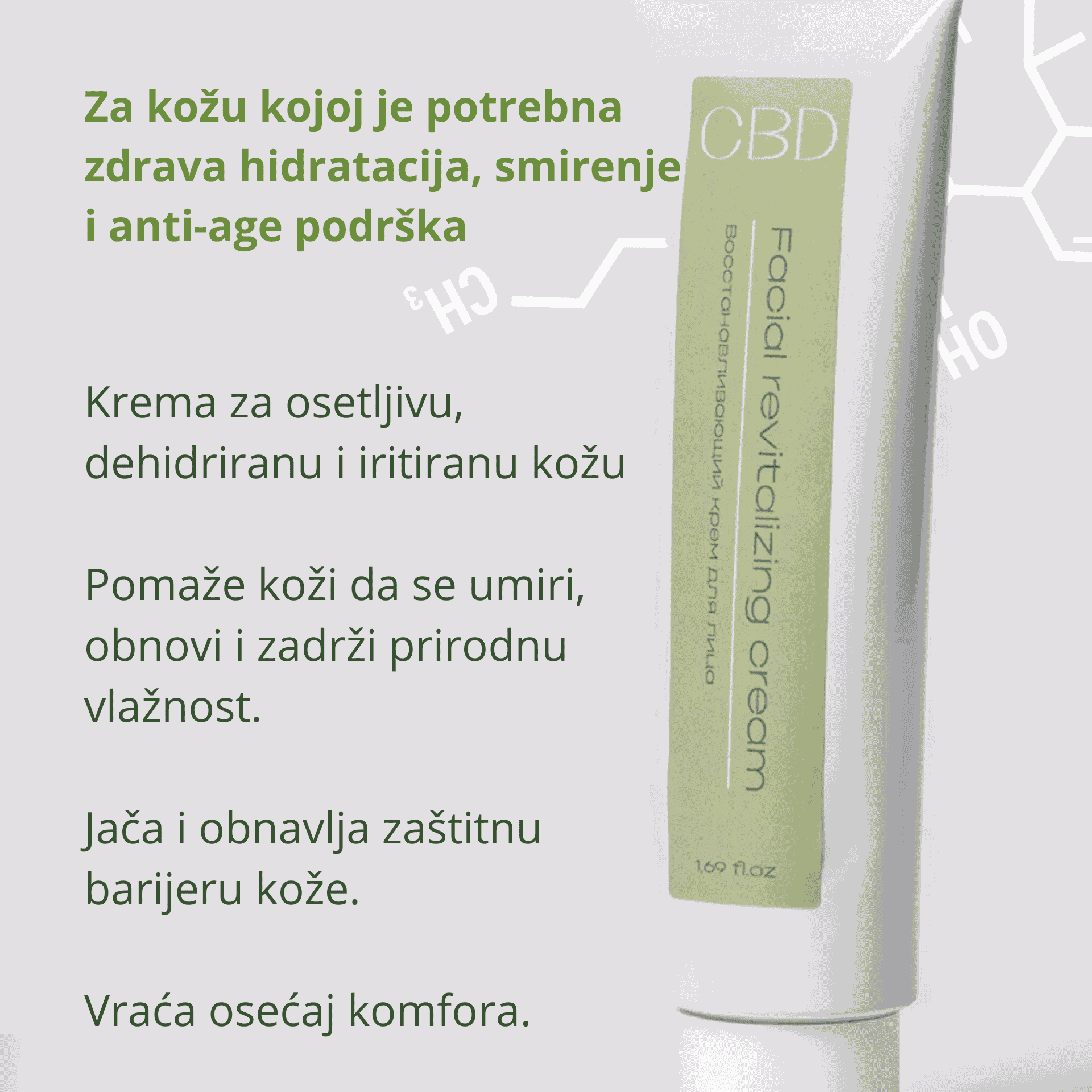 Aqua (Voda), Glycerin (Biljni glicerin), Prunus Amygdalus Dulcis Oil (Bademovo ulje), Cannabis Sativa Seed Oil (Konopljino ulje), Vitis Vinifera Seed Oil (Ulje semenki grožđa), Coco-Caprylate/Caprate (Biljni emolijent), Glyceryl Stearate Citrate Lactate (Biljni emulgator), Cetearyl Olivate (Biljni emulgator), Sorbitan Olivate (Biljni emulgator), Pentylene Glycol (Biljni pentilen glikol), Squalane (Skvalan), Sodium PCA (Sredstvo za vlaženje), Hydrolyzed Wheat Protein (Proteini pšenice), Hydrolyzed Soy Protein (Proteini soje), Sodium Hyaluronate (Hialuronat), Inulin (Inulin), Cannabidiol (Izolat kanabidiola), Tocopherol (Kompleks tokoferola), Beta-sitosterol (Beta-sitosterol), Squalene (Skvalen), Benzyl Alcohol (Benzil alkohol), Cetyl Alcohol (Cetil alkohol), Xanthan Gum (Ksantan guma), Cucumis Sativus Seed Extract (Ekstrakt krastavca), Arctium Lappa Root Extract (Ekstrakt čička), Juglans Regia Leaf Extract (Ekstrakt orahovog lista), Urtica Dioica Extract (Ekstrakt koprive), Benzoic Acid (Benzojeva kiselina), Parfum (Parfemska kompozicija), Hexyl Cinnamal, Linalool, Benzyl Salicylate, Geraniol.