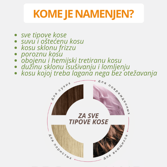 Rezultat je kosa koja je mekša, zaglađenija, sjajnija i otpornija, sa manje frizza, lakšim raščešljavanjem i boljim osećajem po krajevima — bez lepljenja, bez slepljenih pramenova i bez teškog silikonskog sloja.