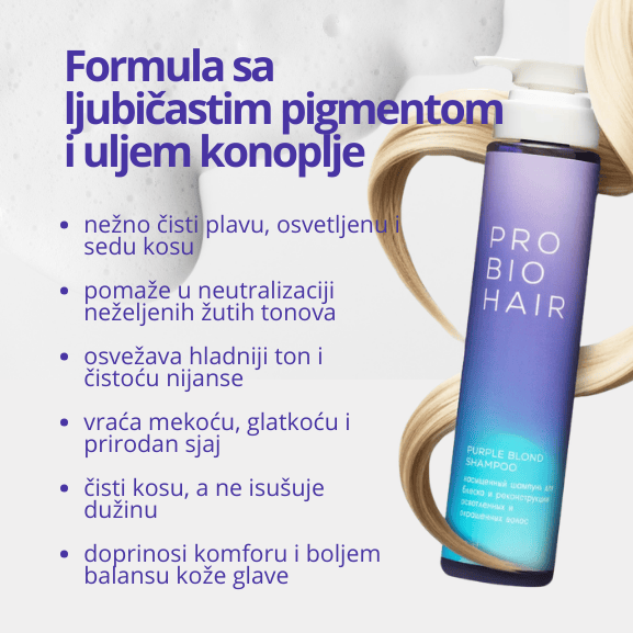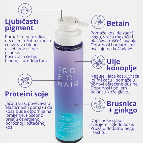 PRO BIO HAIR Purple Anti-yellow šampon za plavu, osvetljenu i sedu kosu 350 ml