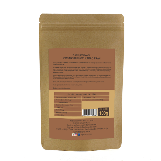 Sastav: 100% Organski sirovi kakao u prahu (Criollo)