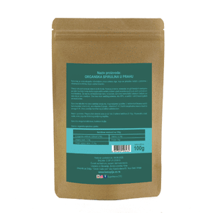 Organska spirulina u prahu je nutritivno gusta namirnica prirodnog porekla, poznata po visokom sadržaju proteina i prirodno prisutnim mineralima. Njena intenzivno zelena boja dolazi od hlorofila i prirodnih pigmenata.
