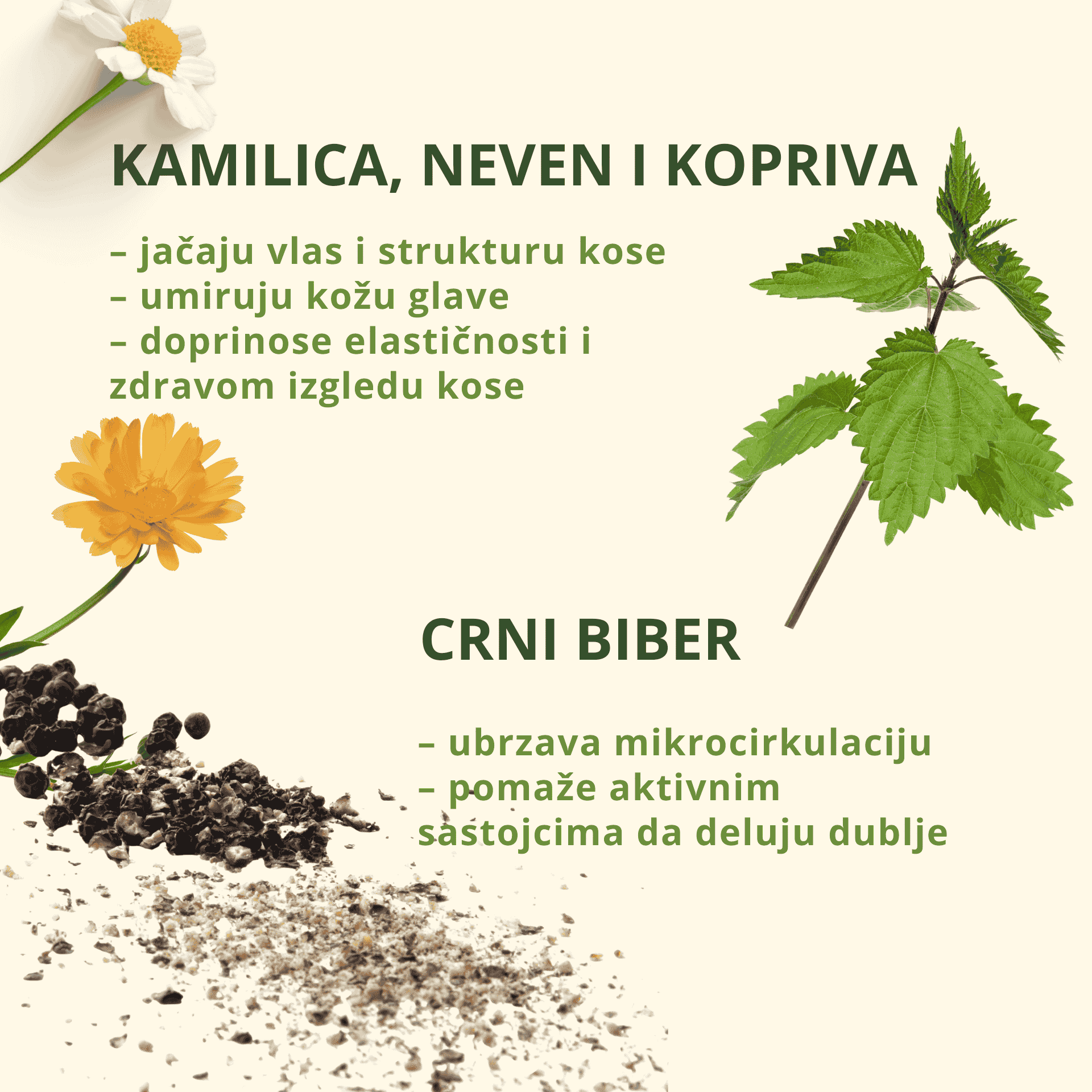 🌼 Kamilica, neven, kopriva, ruža — umiruju kožu i jačaju kosu
